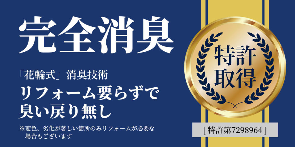 特許取得済みの「完全消臭」技術で、お部屋の資産価値を守ります。