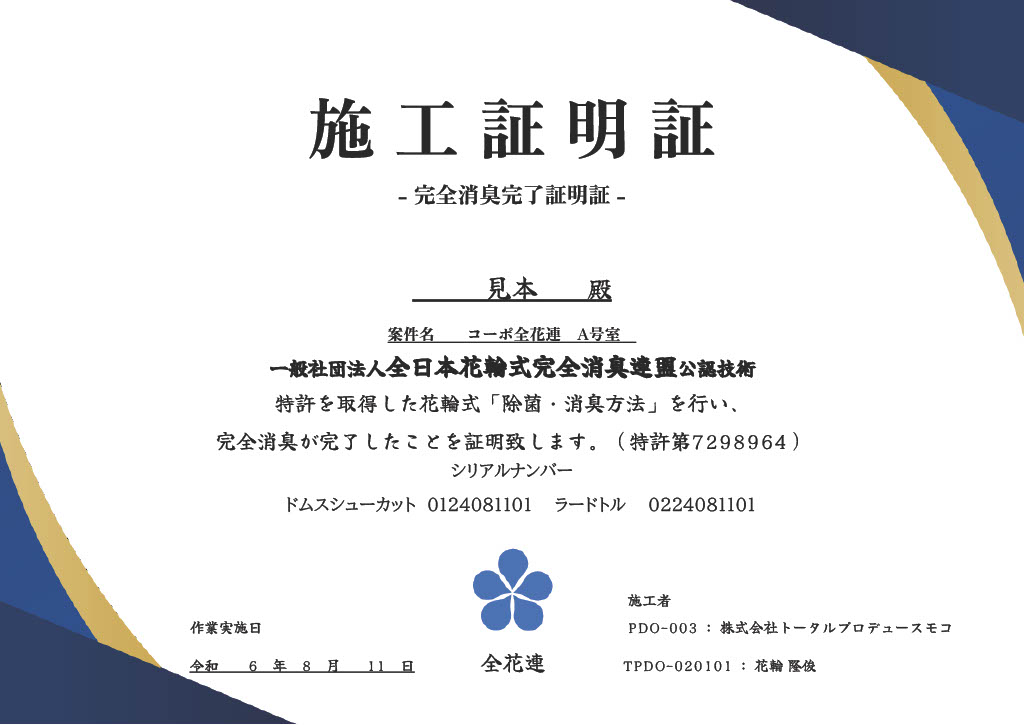 安心してまかせてもらえる!全花連の「花輪式完全消臭技術」